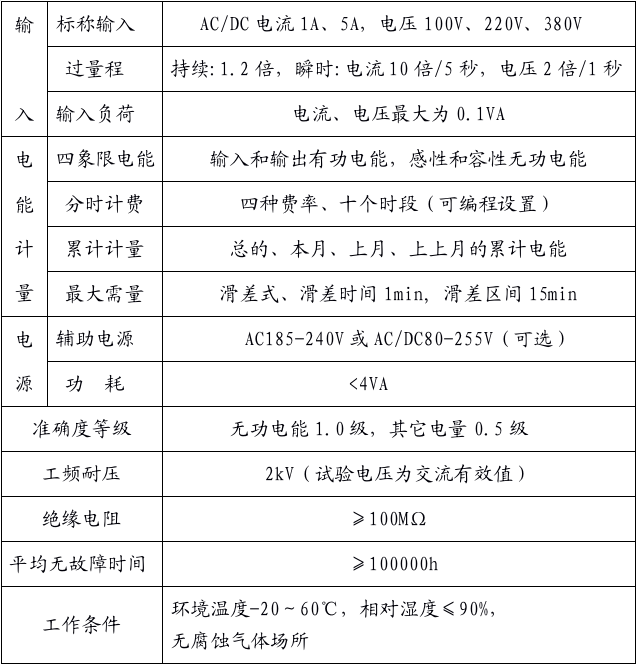 3.同时计量四象限电能(输入和输出有功电能,感性和容性无功电能。)